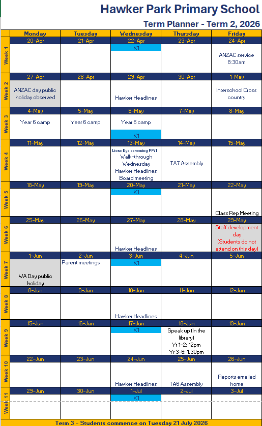 Welcome to Hawker Park, an Independent Public Primary School, where we grow your child’s talent and potential in a safe and caring environment.