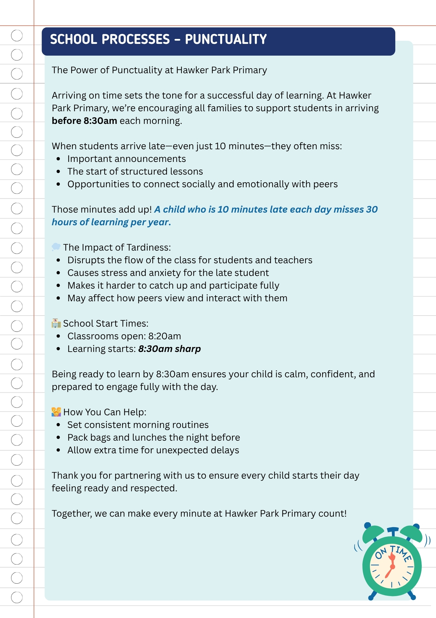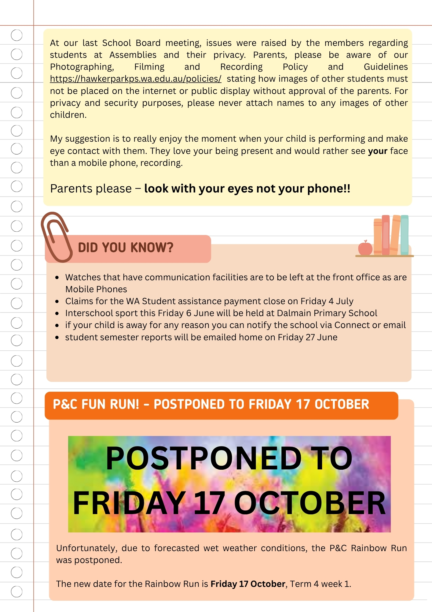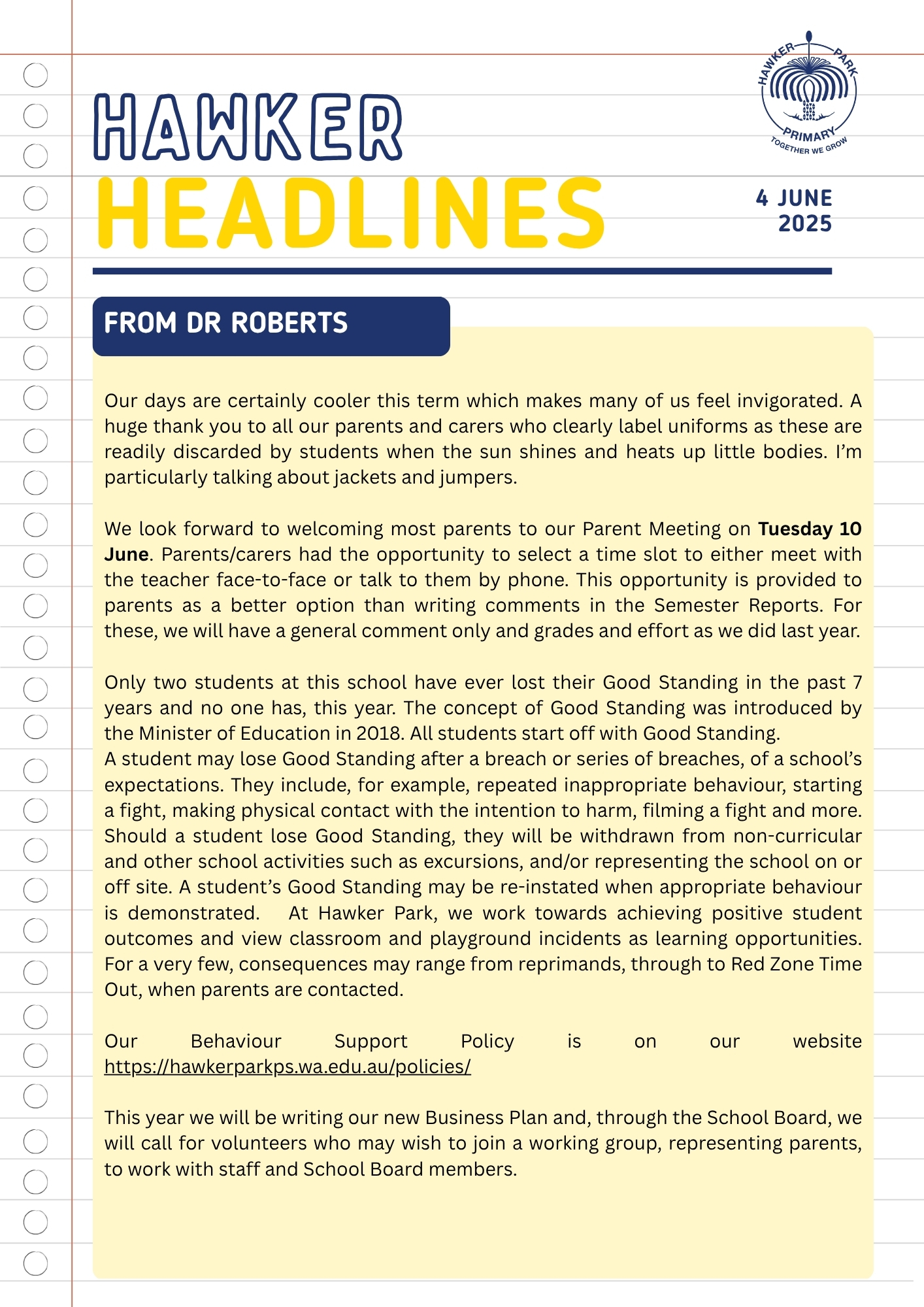 School policies – https://hawkerparkps.wa.edu.au/policies/